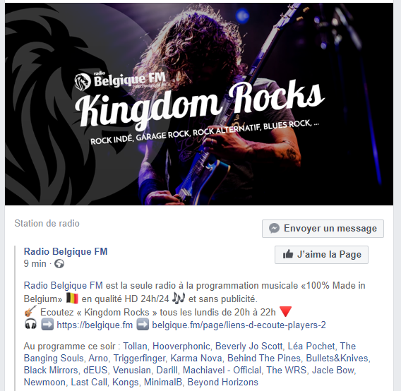 09/03/2020: Kind of proud to be broadcasted among some famous names of the Belgian rock scene !